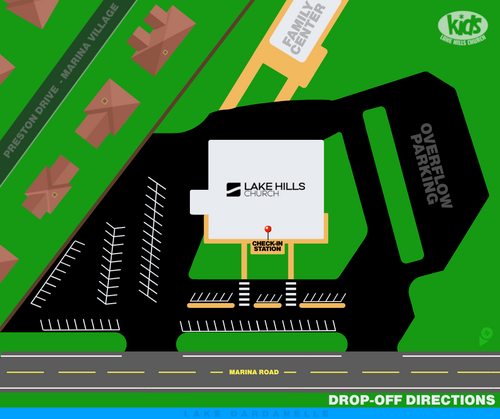 Our Check-in team will be located outside the front lobby doors on the porch. When you arrive for drop-off, please park and walk with your child to our check-in station on the porch.