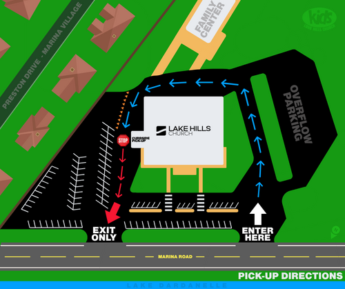 Please use our west-side entrance, as the pick-up line will form around the back of campus. Our check-out team will meet you under the east-side awning. They will view your displayed car tag with your child's name and bring your child to your vehicle.